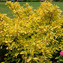 Листопадный кустарник до 2,5 м высотой, крона густая, раскидистая. Растёт быстро. Побеги прямостоячие, молодые побеги красновато-бордовые. Листья широкояйцевидные, крупные, до 10-12 см длиной. При распускании листья розовато-коричневые, затем нежно-желтые, матовые. Осенью незначительно краснеют. Цветки кремово-белые, собраны в многочисленные щитковидные соцветия. Иногда цветет второй раз осенью, и тогда на кусте одновременно висят и цветки и голубовато-белые плоды.Другие предложения